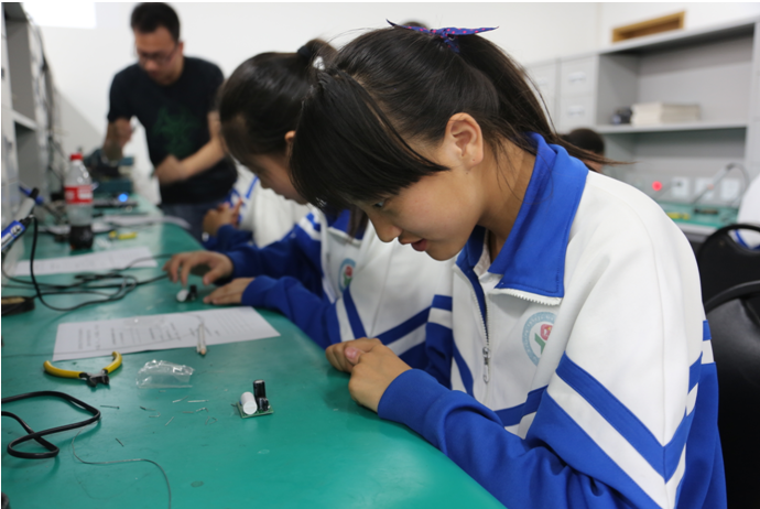 进行参观体验的一共48位学生,分别参观了大学生科技作品、国家空管新航行系统实验室,并焊接制作了呼吸灯电路。